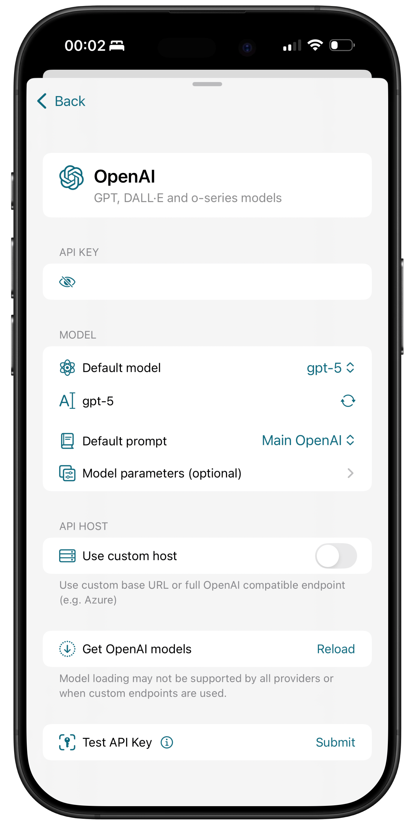To use a custom OpenAI compatible host or an Azure endpoint please refer to this guide.